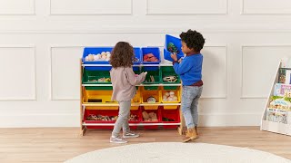 - Easy to Reach: The open design gives children a chance to easily find and store their toys, books, and other belongings; includes three large bins and six standard-size bins for versatile storage