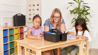 - Storage Caddy Set: Keep school supplies, seasonal items, and art materials within reach in the four compartments of the supplies holder; move lessons indoors or outdoors using the built-in handles