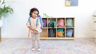 - Product Dimensions: Backpack organizer measures 48" W x 13" D x 30" H; cubbies measure 11.25" W x 12” D x 13" H each; adult assembly required; Adult Active Engaged & Direct Supervision Required