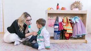 - Dramatic Play: Dress-up and imaginative play time cultivates creativity, and supports self-esteem, language development, and social and emotional skills for toddlers, while immersed in a sense of play