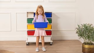 - Mobile Storage Cabinet: Versatile shelving unit on wheels with 20 compartments for toy storage, organizing classroom supplies, craft storage, STEAM activities, and manipulatives in a school