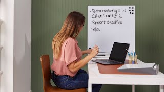 - Desktop Whiteboard: This space-saving magnetic board offers privacy in a cubicle, classroom, or home office; keep office supplies including dry-erase markers and erasers, organized in the storage tray