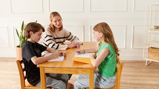 - Hardwood Chair: Adjustable chair with a modern design that elevates children to the table for meals and activities; features an adaptable seat and footrest for growth from toddler, teen, to adult