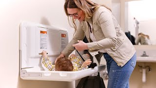 - Wall-Mounted Changing Station: Horizontal fold down changing table designed for use with infants and toddlers; ideal for commercial restrooms, institutional facilities, public places and malls