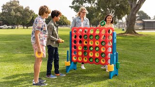 - Outdoor Games: The fun game is an oversized version of the classic connect 4-in-a-row; a large connect-all-4 is great for two players or teams requiring players to think ahead and plan their moves