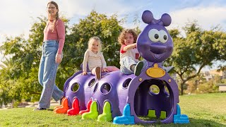 Climb in, on, or around ECR4Kids Peek-A-Boo Caterpillar. The innovative climbing toy for toddlers and young children is designed to encourage physical activity, imaginative play, and cognitive development. This vibrant set includes a whimsical head, and tail, two colored sections that create a crawl-through tunnel with peek-a-boo windows, and 14 large boot-shaped feet designed to hold the unit in place. The weather and fade-resistant material work indoors and outdoors for hours of entertainment, ideal for use in a playroom with a soft surface or a backyard. Children can advance their motor skills by crawling forward, backward, or climbing on top. School-aged children enhance memory by turning the tunnel into an educational game of recalling letters, shapes, and numbers. Beyond physical development, nurture social interaction, when used with multiple kids as they learn to take turns and collaborate. Parents and educators can disassemble for space-saving storage.