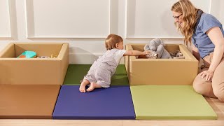 The ECR4Kids Play Patch Toy Bins are the perfect toddler storage boxes designed to spark creativity, promote early development, and keep playtime organized in a playroom, daycare, or preschool. The 2-pack of 24 in-square storage boxes with a base offers a soft and inviting place for babies and toddlers to explore, learn, and have fun. The soft storage bins encourage early organization skills and responsibility, as kids learn to clean up after themselves by putting toys, stuffed animals, or soft play blocks away. Keep playtime open-ended by creating multiple configurations. Use them as an individual toy box or open them to set up as a perimeter and construct an enclosed playpen for tummy time. Transportable and lightweight, the modular bins are perfect for playdates and adventures outside the home. The foam core is covered with water-resistant polyurethane vegan leather with a durable woven backing. Fully stitched seams and soft edges make these soft bins safe for children. Pair soft toy bins with ECR4Kids Play Patch Activity Mat (sold separately) to create a baby playpen. This soft play space encourages organization, offers easy access to belongings with toy bins, and is designed to support every stage of toddler development.