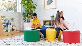 - Foam Ottomans: Create collaborative environments with this set of 4 colorful round ottomans; modular flexible seating is great for classrooms, preschools, playrooms, bedrooms, or home learning spaces