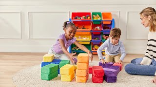 Watch creativity flourish as kids play, build, and invent with ECR4Kids SoftZone Stack-A-Brick soft building blocks. Designed for everyday use in a daycare, preschool, and perfect for home, this 24-piece set introduces block play, color recognition, and STEM activities at a young age. Building and purposeful play are essential in early childhood development and allow for abstract thinking and a chance for young builders to imagine and create one-of-a-kind designs. Encourage kids to take a hands-on approach to lead their learning while promoting problem-solving, critical thinking skills, and collaboration as they build with increasing complexity. Rectangle foam baby blocks are the perfect size for tiny hands to carry, toss, and stack high. These soft play toys encourage hands-on learning and motor skill refinement. Soft and lightweight, these modular quiet blocks fall over without making loud crashes. Foam blocks for toddlers stimulate imagination, dexterity, and spatial reasoning abilities. The foam core is covered with a plush material for gentle soft play. The daycare essentials arrive fully assembled allowing for more time for play. Create a larger play area for safe active play and create fun color-matching games and patterns by pairing them with ECR4Kids Activity Mats; sold separately.