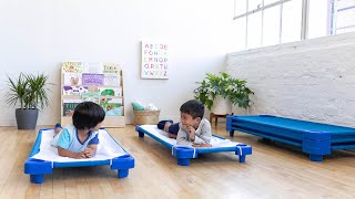 - Space Saving: Cots are readily accessible for teachers and feature a space-saving design for more cots to fit in the same vertical space; lightweight cots nest together for quick storage