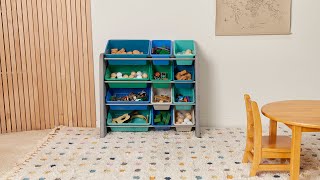 - Versatile Storage Unit: The four-tier kid's toy storage organizer is perfect for keeping your home or classroom clutter-free; 12 plastic storage bins keep essentials organized and accessible